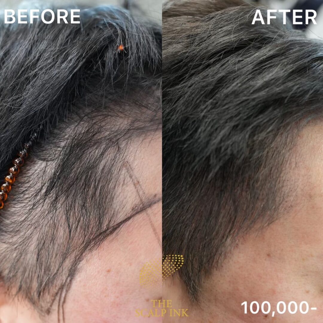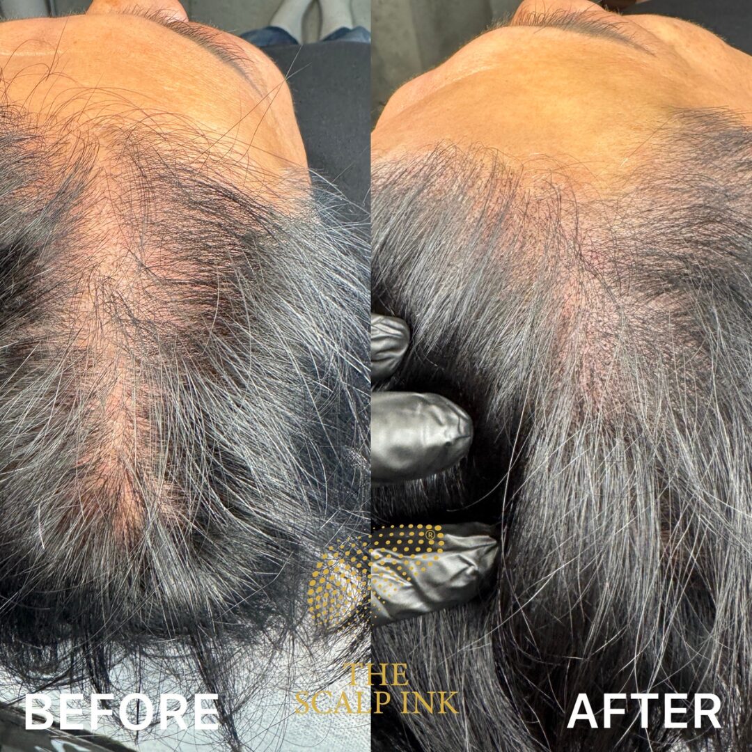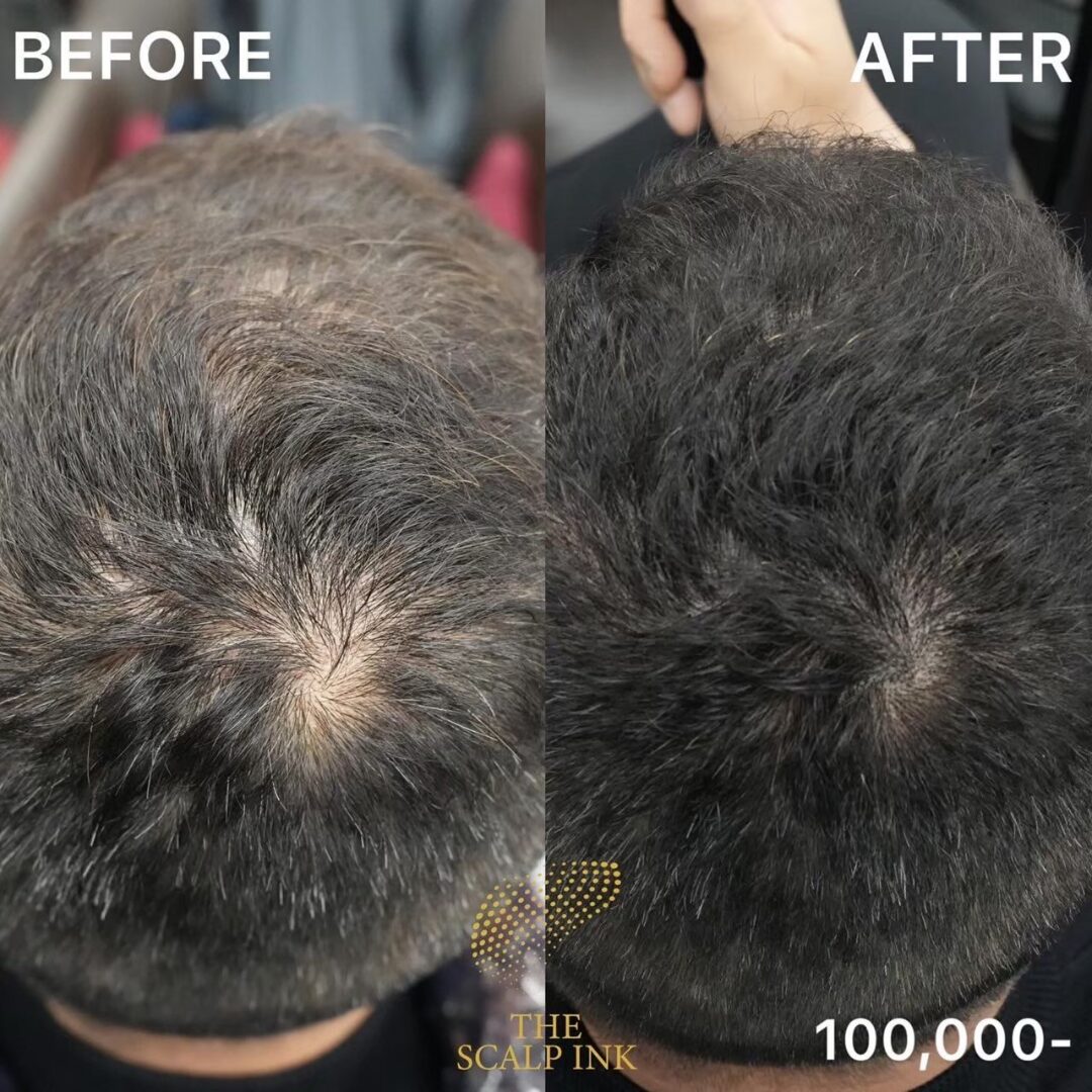 スカルプインクは、オリジナルの特殊なインクを使用して毛髪と同じサイズの美しいドットを描いていきます。髪を増やすのではなく、視覚的に“生えているように見せる”最新技術。AGA治療や植毛とは異なり、短時間・低負担で自然な見た目を手に入れられるのが特長です。
